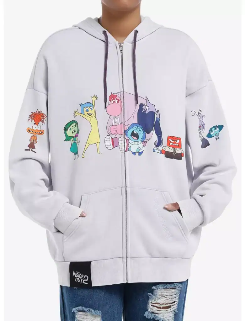 The new Inside Out 2 character, Embarrassment slouches on the back of the hoodie. This character makes me feel seen because there have been so many times when I felt like hiding in my hoodie. You can totally do that with this hoodie, even if you aren’t embarrassed! It almost looks like Embarrassment is wearing the same hoodie that you are. Even the colors match!