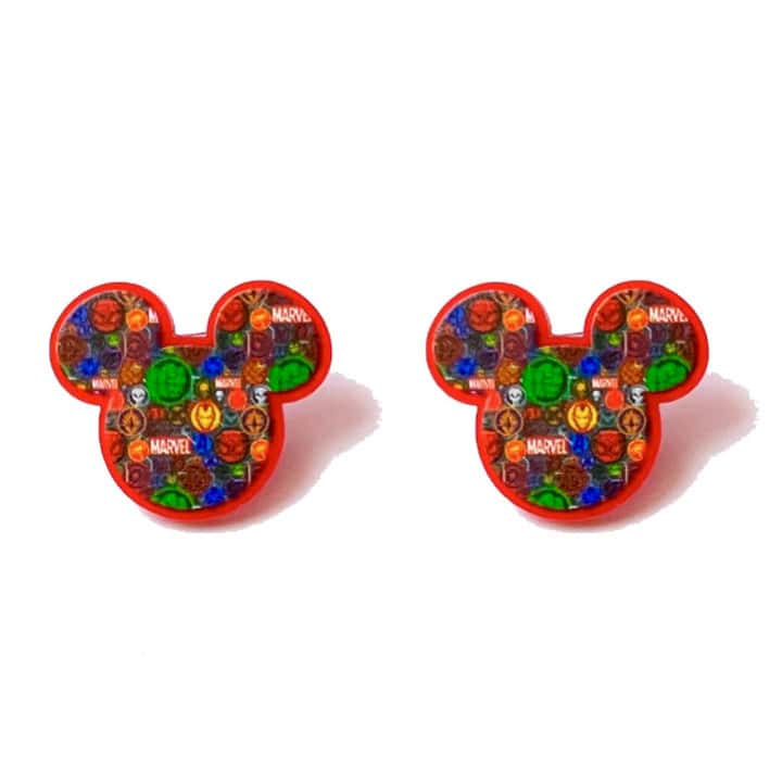 First up are the fabulous full team options! There are these Avengers Tiered Drop Earrings featuring the masks and symbols of our favorite Avengers, these silver and black Glitter Avenger Drop Earrings, these Mickey-shaped Superhero Drop Earrings, these Avengers Logo Button Earrings, and these Mickey-shaped Superhero Post Earrings!
