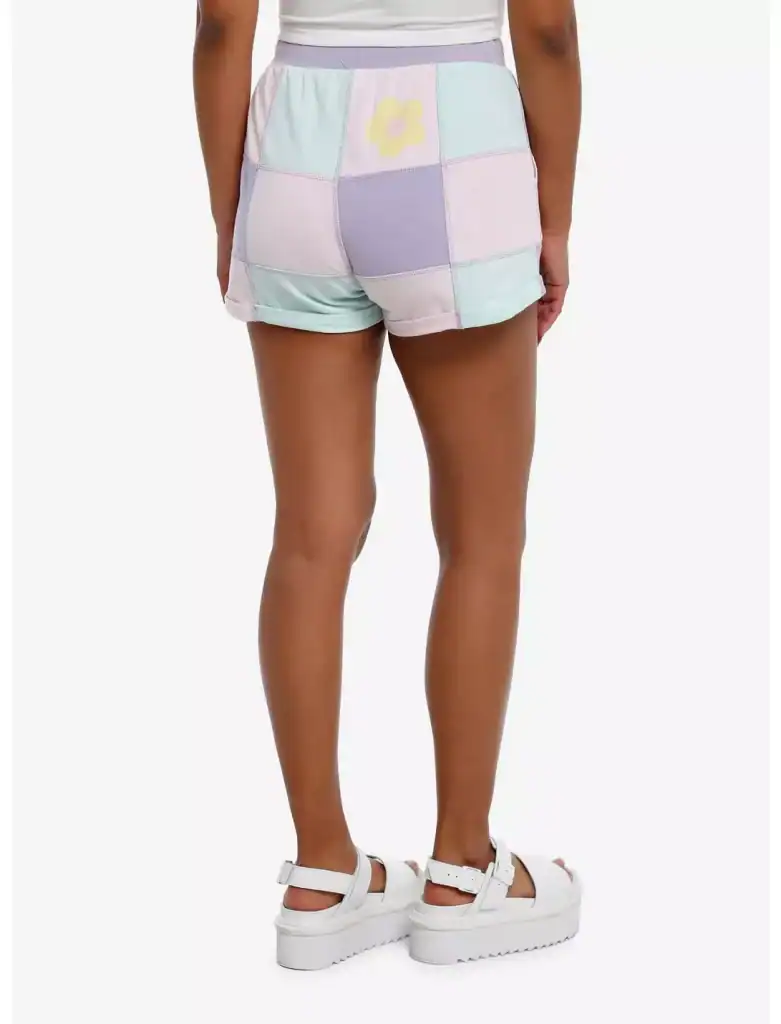 And if we didn’t already love these shorts to begin with, the design on the back takes them to a whole other level. Here we see the patchwork design, just like on the front. But on the back, there is one single bring yellow daisy.