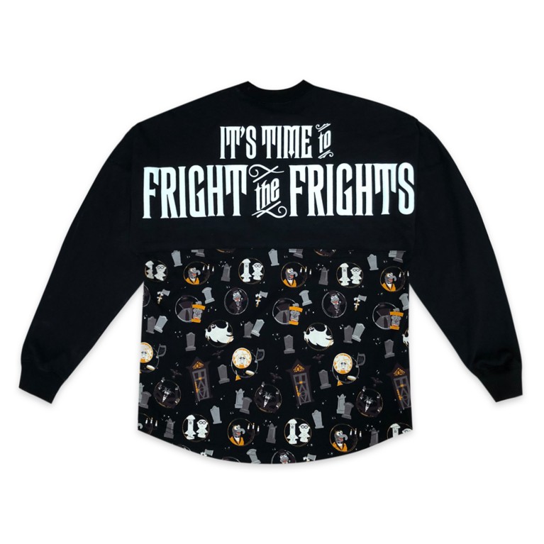 First up is this fabulous glow-in-the-dark Spirit Jersey for adults that features the special’s logo on the front chest in glow-in-the-dark ink, the words “It’s time to fright the frights” across the shoulder in glow-in-the-dark ink, and an allover pattern of adorable images from the special around the body! You can spot Madame Pigota, Gauzey the Hatbox Bear, The Great Gonzo, Pepé, and more!