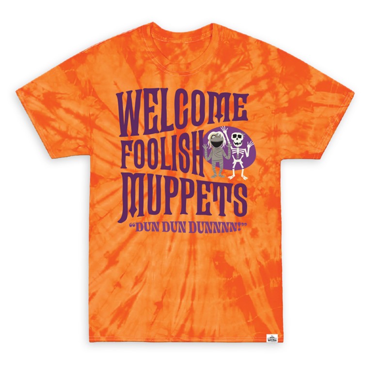 If you prefer a bit more color, there is an orange tie-dye tee featuring the words “Welcome Foolish Muppets” and “Dun Dun Dunnnn!” along with the image of Mummy and Duddy! The special’s logo is at the hem!