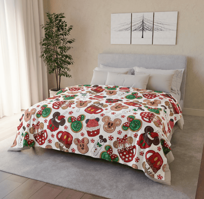 Grab some Christmas cookies, pour some hot cocoa, and snuggle up. This Disney Holiday Snacks Minky Blanket from Sea2SeaTreasures on Etsy is a sweet treat. Prepare for a holiday movie marathon in style when you add this cozy blanket to your couch.