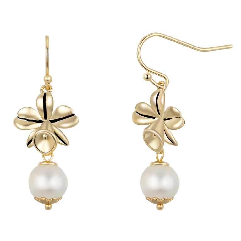 Next are the earrings including these fabulous Encanto Drop Earrings featuring gold orchids with black detailing along with a pearl bead handing from each one!