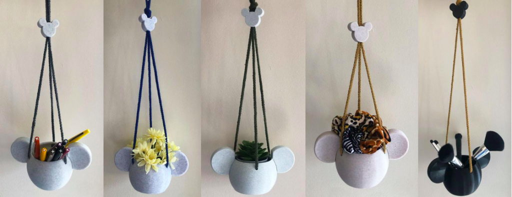 First up is this Mickey Hanging Pot! This precious piece is a great way to show off your favorite succulent or other little treasures! It features an adjustable Mickey icon top bead and a Mickey head-shaped pot! It is even available in five different colors, so you will be able to find the perfect option to match your decor! Choose from white marble with grey cord, blue speck marble with blue cord, green marble with green cord, straw color with brown cord, and black with brown cord!