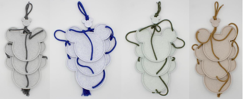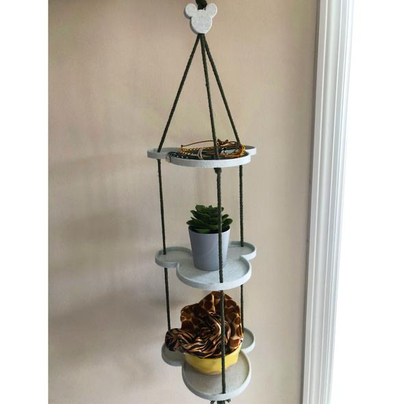 If you prefer to display a variety of your favorite things, check out this Mickey 3-Tier Hanging Tray! This adorable piece features an adjustable Mickey icon top bead and three trays all shaped like Mickey icons! This piece is available in four colors–white marble with grey cord, blue speck marble with blue cord, green marble with green cord, and straw color with brown cord!