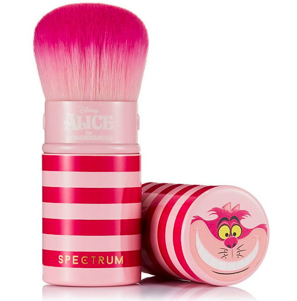 The Cheshire Cat Kabuki Brush is a fabulous retractable ombré brush featuring two-tone pink stripes on the sides and the Cheshire Cat’s smiling face on the end! It also comes in a matching striped tube!