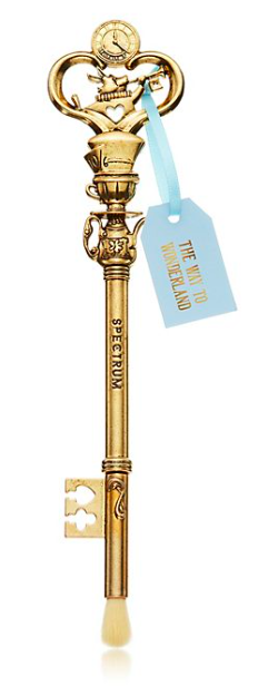 This Key to Wonderland Makeup Brush is my favorite brush in the collection! It is so gorgeous and detailed! The antique gold finished metal cast fluffy pencil brush is perfect for putting the finishing details on your eye look! With the amazing details like the key shape, teapot, teacup, clock, Mad Hatter’s Hat, and the White Rabbit, you may just want to display this piece! It even comes in a little tube that features an allover pattern of keyhole images!