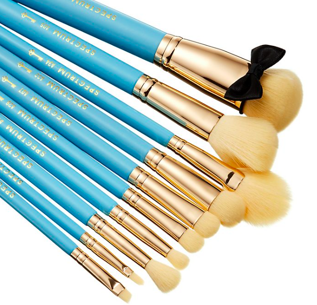 Last, but certainly not least, is this 10 Piece Brush Set! This brush set includes everything you need to perfect your makeup look! The ten pastel blue handled brushes feature golden tone bristles and one even features Alice’s signature black bow! Each brush also features the words “Meet me in Wonderland.” The set comes in an adorable tube featuring Alice!