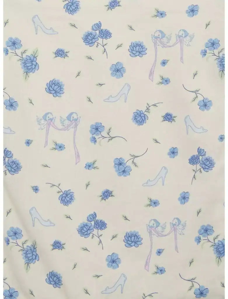 We don’t know if the shoe fits, but this tank top sure will! Inspired by Cinderella, this ruffled top features icons amid blue florals, paired with adjustable straps, a smocked back panel, and an elastic waist.