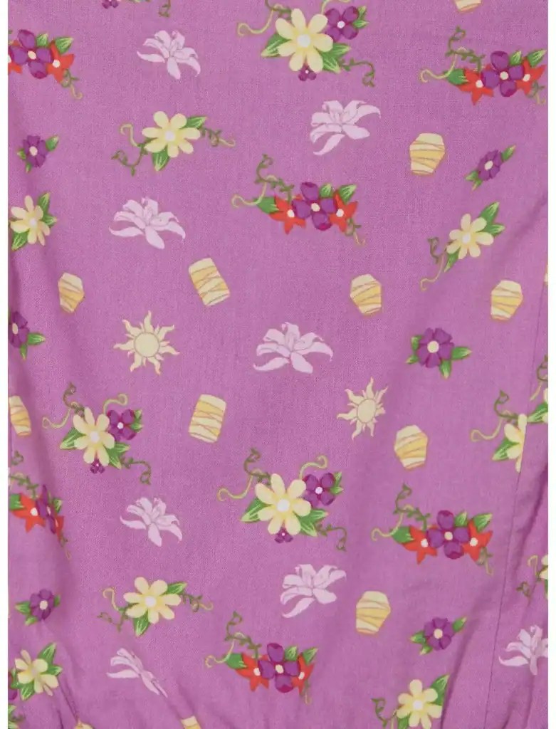 See the light in this Tangled tank top! This ruffled top features floating lanterns amid pretty flowers, paired with a smocked back, elastic waist, and adjustable straps.
