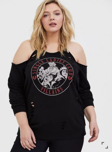 DISNEY VILLAINS SINGLE LADIES CLUB BLACK DISTRESSED COLD SHOULDER SWEATSHIRT