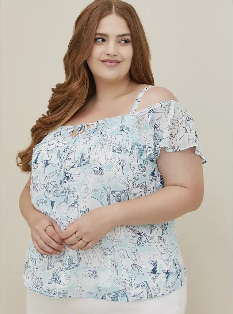 DISNEY CINDERELLA FLUTTER SLEEVE TOP – CHIFFON SKETCHES BLUE. This sketchbook style design is stunning and perfect for any Disney Princess fan! I am already imagining myself wearing this to a brunch at Cinderella’s Royal Table! You are sure to feel like a Disney Princess yourself when you wear this flutter sleeve top.