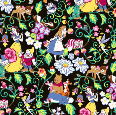 The Disney Classic on Green is the print on the left. You can see that there is a lot of greenery but there aren’t many swirls. I really had to look at the 2 because they are rather similar to me. The swirls and the brighter green of the leaves are what caught my eye in the Disney Classics Swirl print.