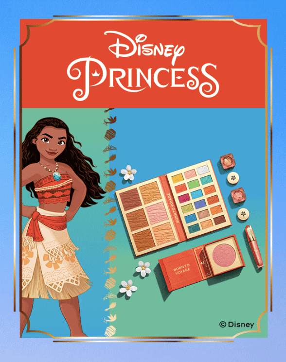 The Moana Collection includes a gorgeous fairytale book palette featuring 18 colorful matte and metallic eyeshadows, 3 matte blushes, and 3 highlighters that all have colors and names inspired by the film like a bold matte royal blue named “Motunui,” a shimmering teal named “Sail,” a bold matte red named “Lava,” and a soft shimmering bronze named “Shape Shifter!”