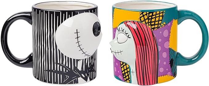 - Silver Buffalo Disney Nightmare Before Christmas Jack and Sally Kiss 2 Pack Ceramic 3D Sculpted Mug Couple Set, 20 Ounces