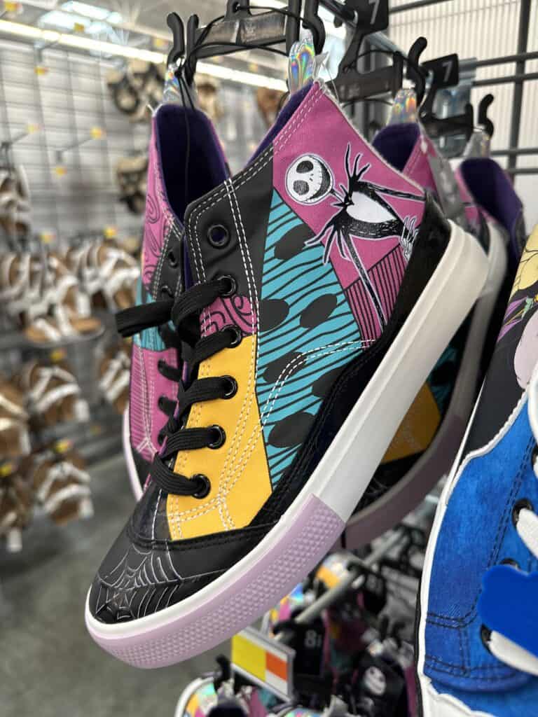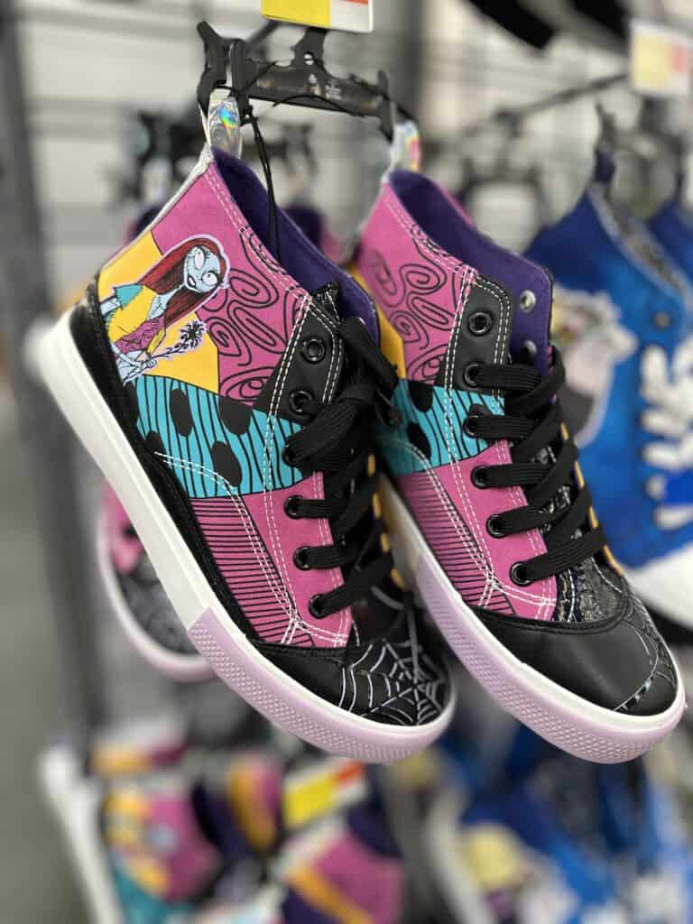 During our Walmart adventures, we found two new edgy Disney Styles. The first is this Nightmare Before Christmas option. These shoes are a great way to start fall and the spooky season off on the right foot. Sally is haunting one side of the shoes. She has a dead flower that Jack gave her. The background pattern looks exactly like her dress.