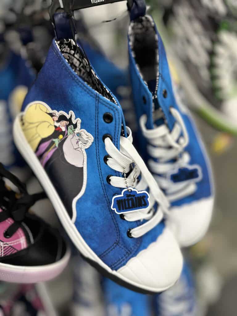 I knew that I needed the second pair of shoes from the moment that I saw them! All of your favorite villains are conspiring to come up with an evil scheme on these shoes. On one side, we see Cruella, Ursula, and Maleficent.