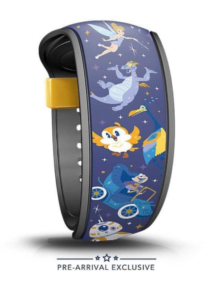 The other side of the MagicBand includes Tinker Bell, Figment, Chuuby, Kevin, Mr. Toad, and BB-8. I love how this side features characters from each of the Parks at Walt Disney World. Tinker Bell and Mr. Toad represent Magic Kingdom. Figment represents Epcot, Chuuby and BB-8 represent Hollywood Studios. Finally, Kevin represents Animal Kingdom.