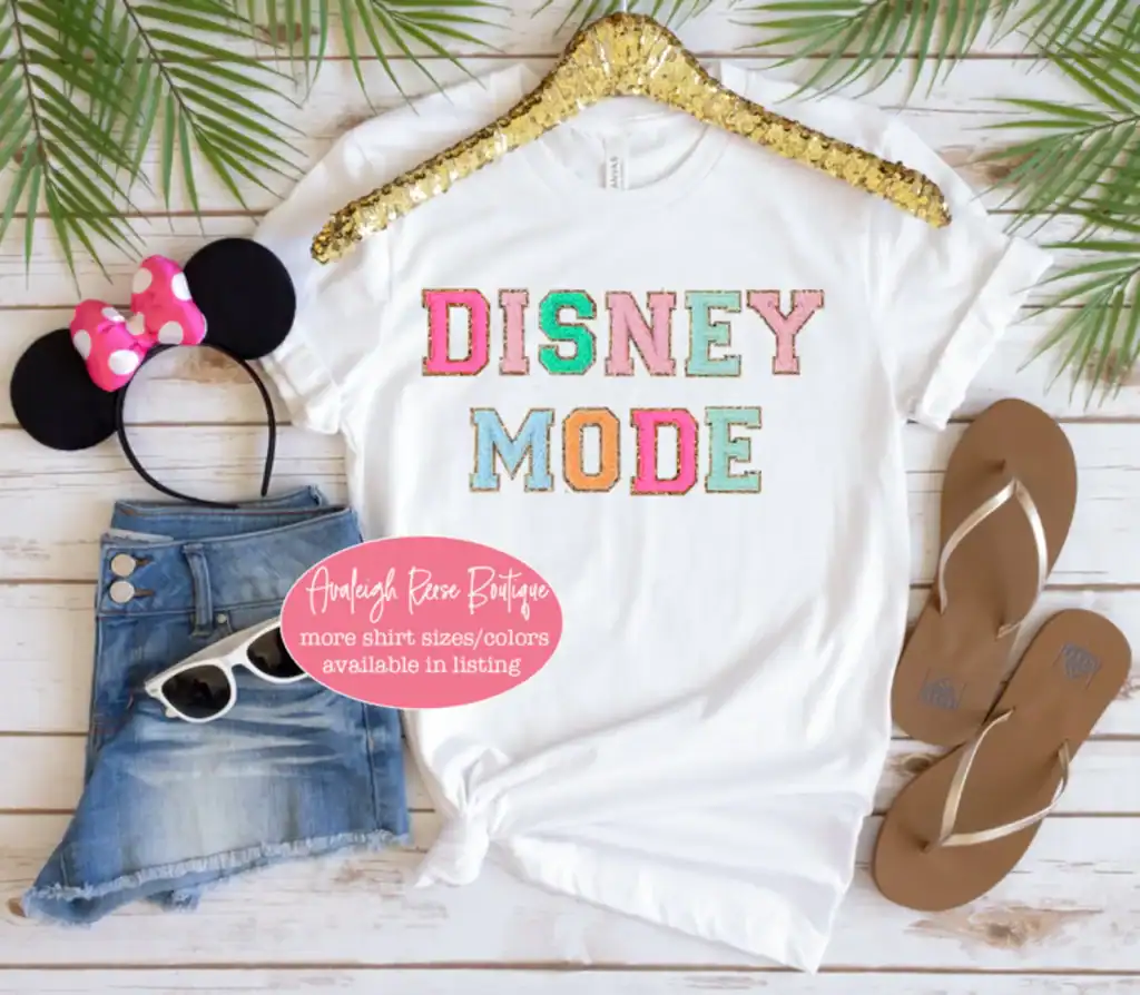 Whether you are headed to Disney, headed back to school, or just want to show off your Disney style, head over to AvaLeighReese on Etsy on Etsy to check out this fun Disney Mode t-shirt! Pricing starts at $20.99.