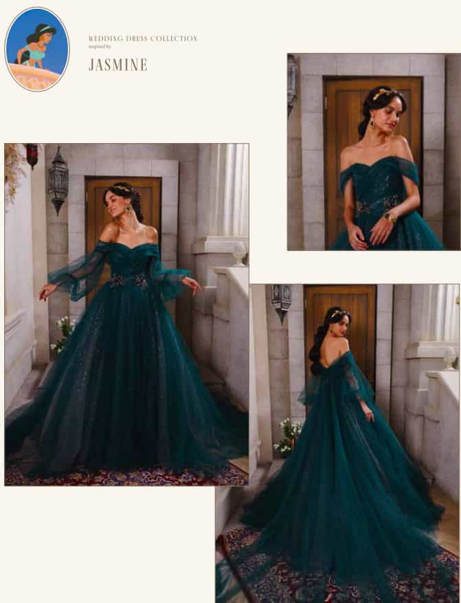 All I can say is I want to be a bride! Or attend any occasion to wear these dresses! Six princesses are represented: Jasmine, Rapunzel, Ariel, Belle, Cinderella, and Snow White. Not only are the designs exquisite, but the colors are so vibrant. Seriously, check out Jasmine’s teal and Snow White’s ruby red. Cinderella’s Royal gown is available in traditional princess blue, or in wedding white.
