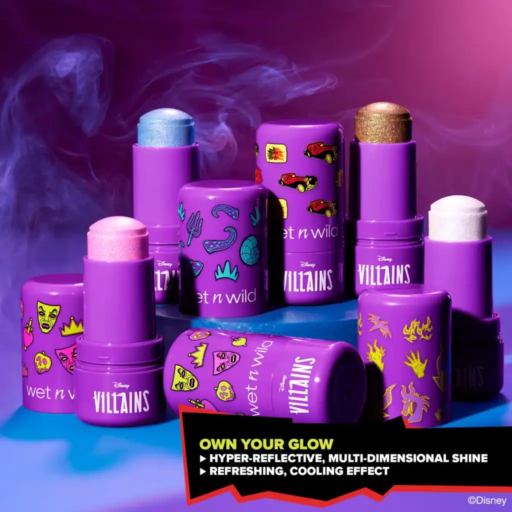 Get ready to make a bold beauty statement with wickedly gorgeous shades. Get your entire arsenal of beauty tools themed after the villains you love to hate! Uncover mascara with Maleficent, creamed color with Cruella, and evening eyes with the Evil Queen. No need to pluck a squid-like creature to get bright, beautiful lip color like Ursula. Embrace your inner villain with products including highlighter, brow pencil, plumping lip gloss, blush, contour and more!