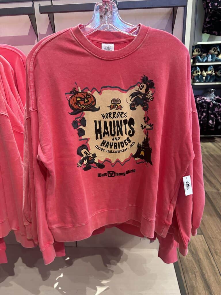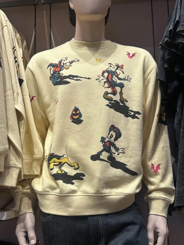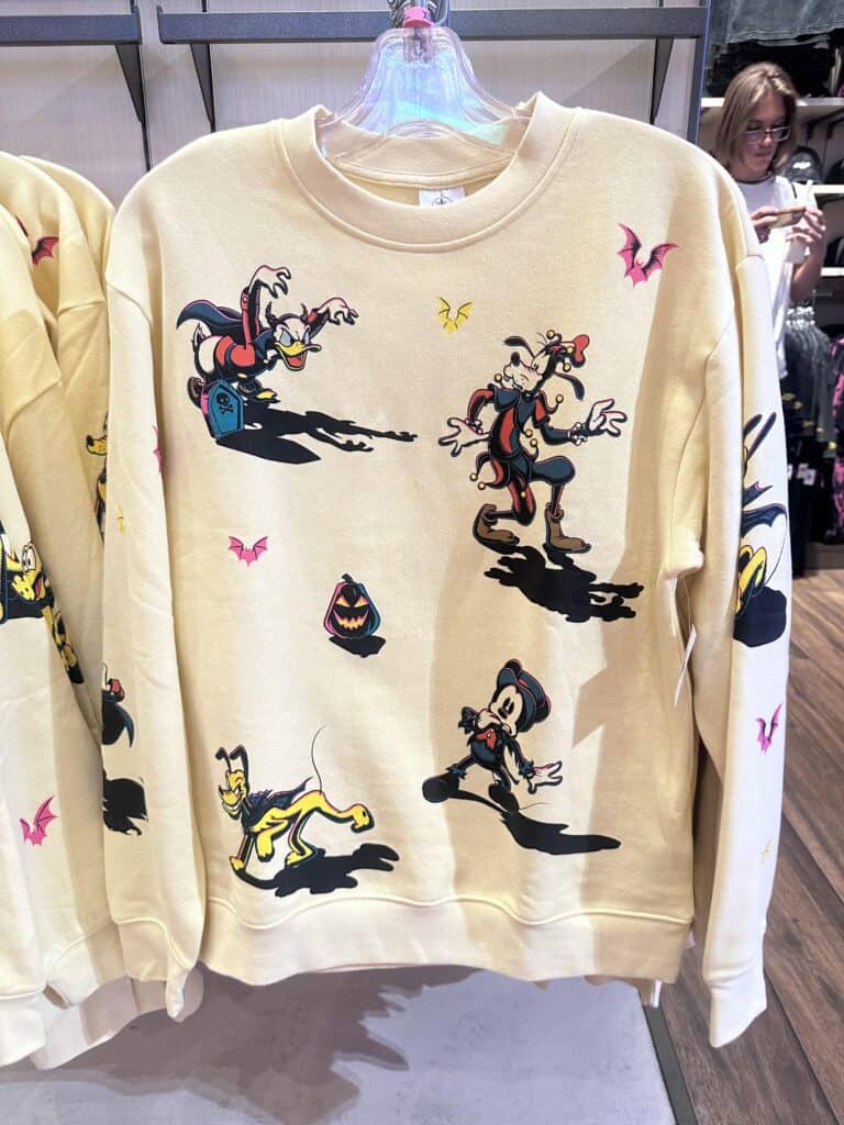 No matter what your Halloween style is, there is something for everyone in this collection! For the last few years, the Halloween collections have not been my particular favorite. However, this collection is different and there are several pieces that will be joining my collection! I love the Happy Halloween 2023 burnout gray t-shirt, I think Minnie Mouse looks amazing on the tank top, and the white pullover style featuring Mickey Mouse and the gang dressed up in costume is a must-have.