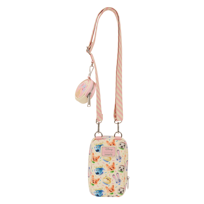 Judy Hopps joins the force with the cell phone crossbody with coin bag. How lovely it is to not carry a huge bag at the parks! Along the crossbody strap is a detachable coin bag. You’ll find a paw print on one side, and on the other, you’ll find “Sweetopia” written out in confectionery sweets! No detail was left out!