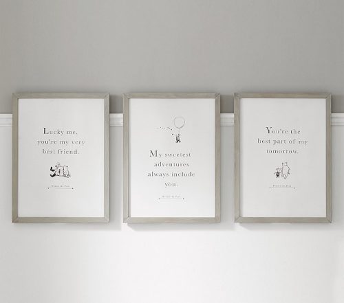 Cheerful prints in a wood frame also make for the perfect accompaniment to any room. Featuring sweet sentiments from Disney’s Winnie The Pooh, these wall art pieces combine charming quotes with timeless imagery from one of our favorite stories.