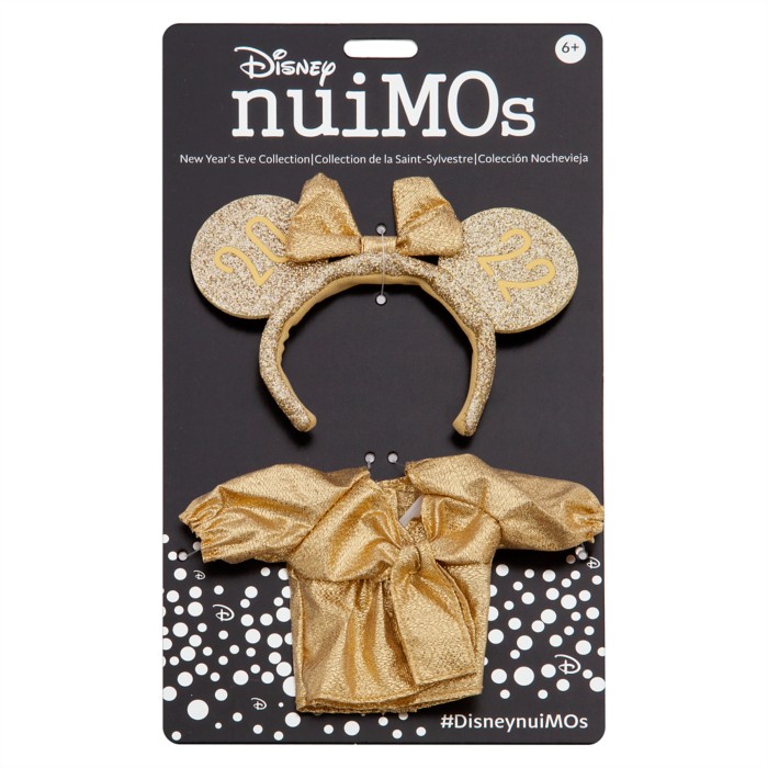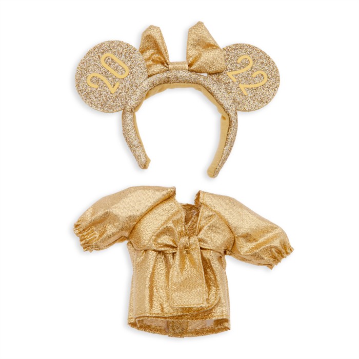 For the fancy New Year’s Eve parties, check out this fabulous outfit that includes a metallic gold wrap dress with a tie at the waist and a gold glitter Minnie Ear Headband with “20” on one ear, “22” on the other, and a fabulous metallic gold bow at the center!