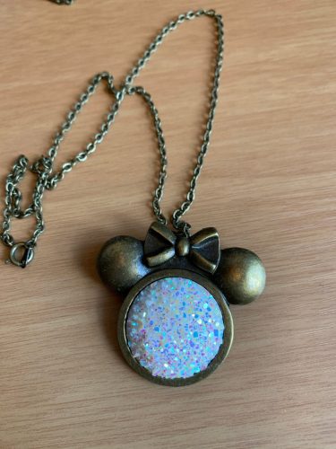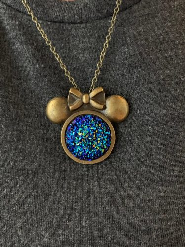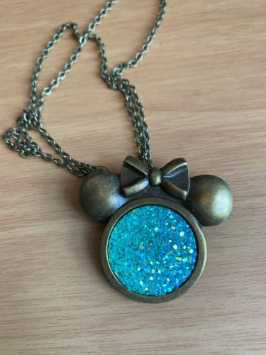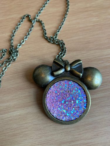 This charm style necklace is probably one of my favorites that I have seen in a while! It’s something a little different, but still totally classic and timeless. the bronzed gold color of the charm really allows the sparkly color to pop! Minnie Mouse’s bow all looks perfectly placed on this style, don’t you agree?