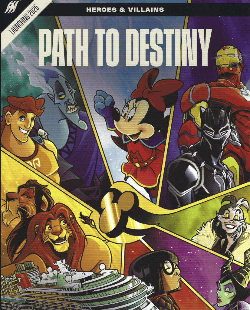 This fabulous graphic artwork by Miriana Puglia was included in the package. It is a hint to the characters at the heart of the stories on the Disney Destiny! What I’m choosing to take away from this is that Minnie is a superhero! That and the fact that Maleficent and Cruella are in the corner… could we get a Villains inspired bar?!